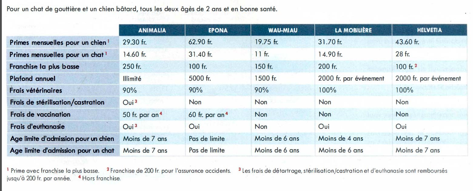 Pour s’y retrouver, il est conseiller de faire un récapitulatif des frais vétérinaires payés au cours des dernières années et de calculer la part qui aurait été prise en charge par l’assurance. Au final, le coût d’un compagnon à poil est nettement plus élevé qu’on ne le croit. Selon comparis.ch, un chien revient à plus de CHF 20 000 sur une vie d’environ 13 ans.