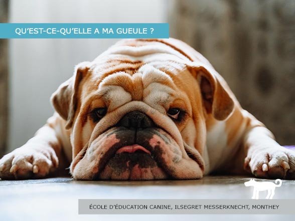Oui. Je suis prognathe. Et alors? j’ai 3 ans et demi, Je suis une bouledogue anglaise. Je suis née avec un museau en forme d’accordéon replié. Et puis, vers 3 ans, ma mâchoire inférieure a commencé à grandir vers l’avant, mes incisives de dessous se sont avancées jusqu’à dépasser celles du dessus. L’âge adulte m’a apporté une Weltanschauung bouddhiste, une sagesse de poétesse pythagoricienne. Et une mâchoire digne de Popeye ou de Joe Dalton.